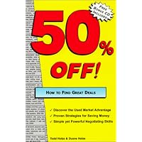 Do you want a proven money saving strategy to accumulatesavings and wealth into your life?With a plan for success, theauthors of "50% OFF!..." show you how to buy in the used market atincredibly reduced prices, avoid depreciation and keep the money inyour pocket.From classified ads to the high powered Internet, greatdeals are everywhere when you know where and how to look.With just a few techniques you'll learn: Places to find unbelievabledeals right in your neighborhood, Simple yet powerful negotiatingskills, How to close a deal at your price and even how to create dealsusing no money.FREE Bonus CD-ROM included with every book provides an easy to use WebGuide to over 2000 FREE sites offering: FREE Pricing Guides, FREELocal Newspapers and Classified Ads in all 50 states, FREE InternetService, Important Consumer Information and more.